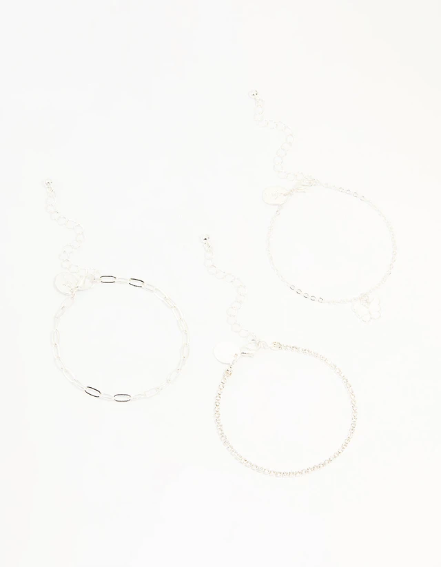 Mixed Metal Cubic Zirconia Butterfly Link Necklace Pack