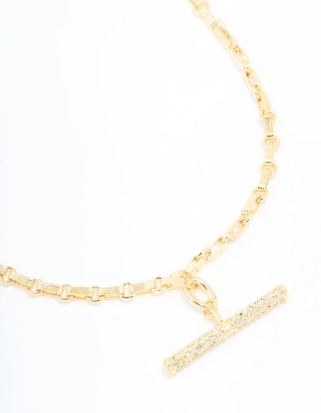 Waterproof Gold Plated Stainless Steel T-Bar Necklace