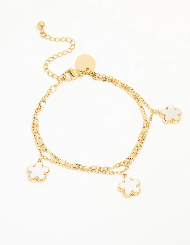 Waterproof Gold Plated Stainless Steel Double Ring Bracelet