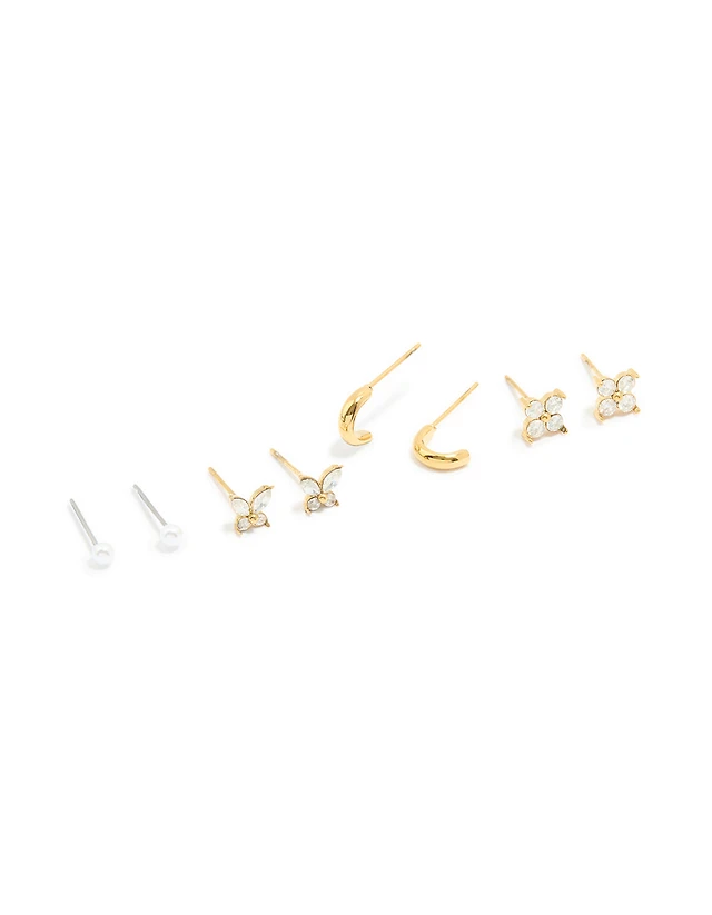 Waterproof Gold Plated Stainless Steel Cubic Zirconia Flower Stacker Earrings 3-Pack