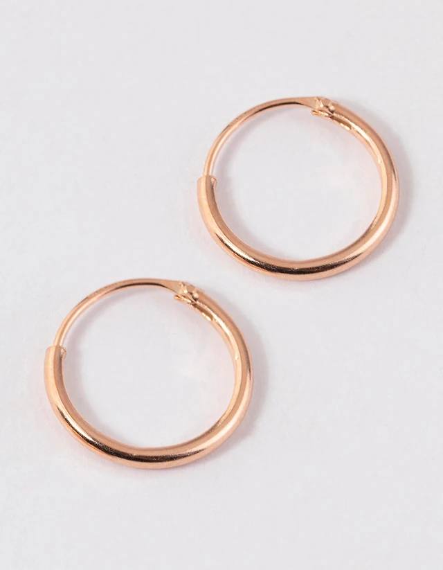 Rose Gold Plated Sterling Silver Diagonal Hoop Earrings 12mm