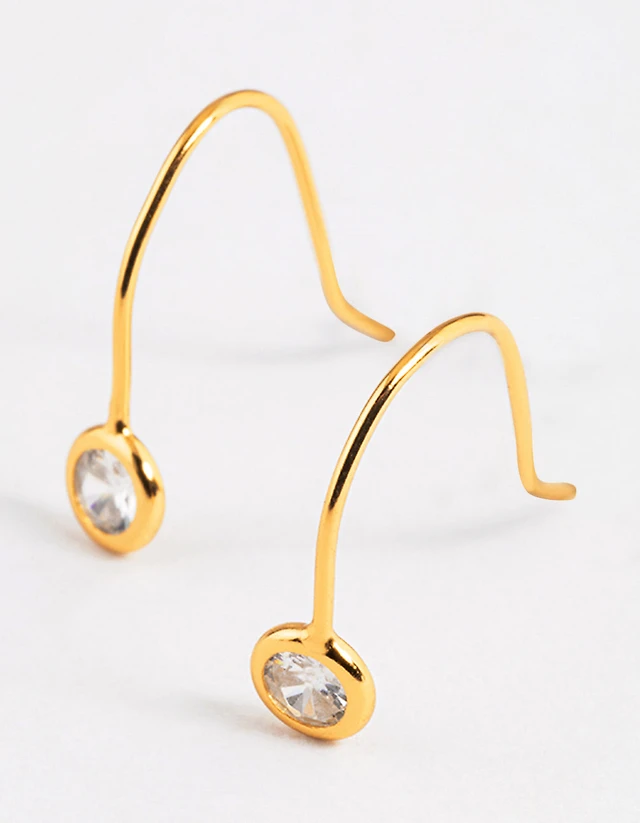 Gold Plated Sterling Silver Oval Cubic Zirconia Stud Earrings