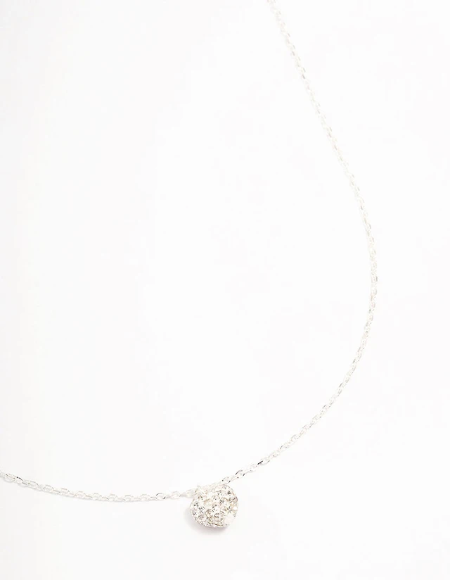 Sterling Silver Pave Circle Pendant Necklace