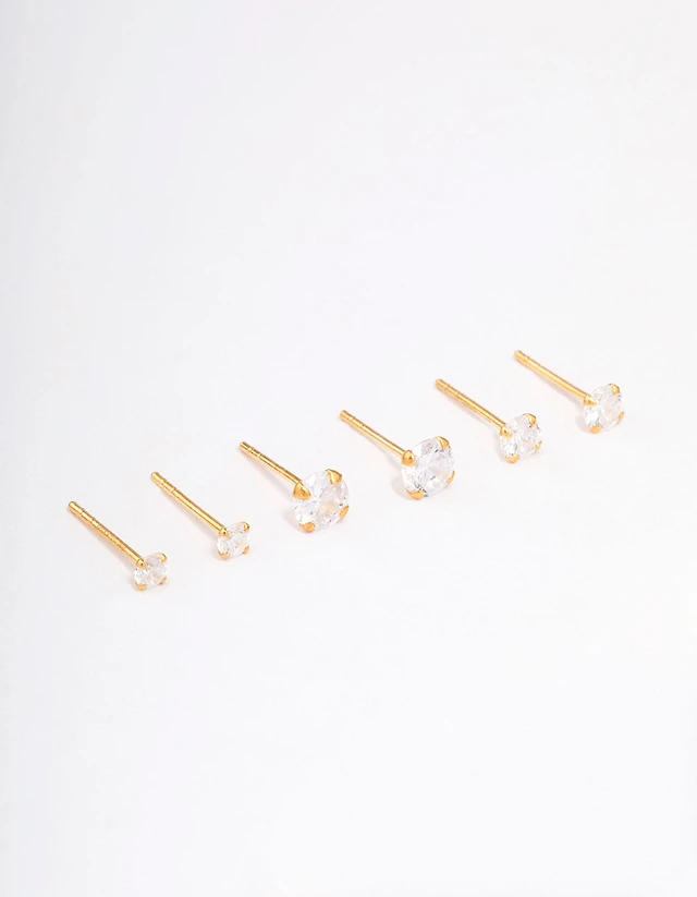 Gold Plated Sterling Silver Crystal Cubic Zirconia Earring 3-Pack