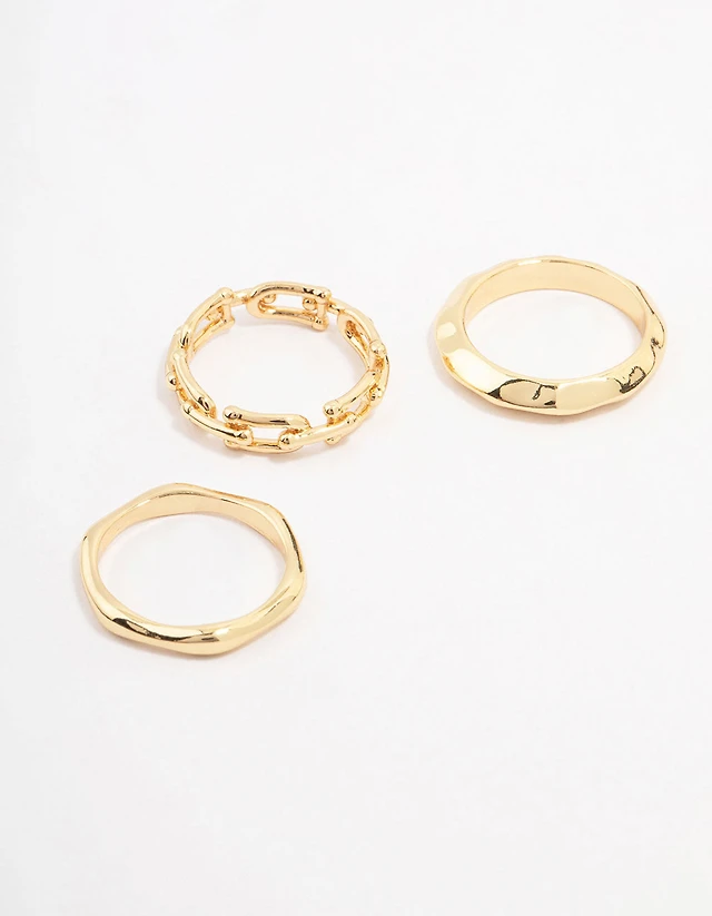 Gold Sand Blast & Link Hoop Earrings 3-Pack