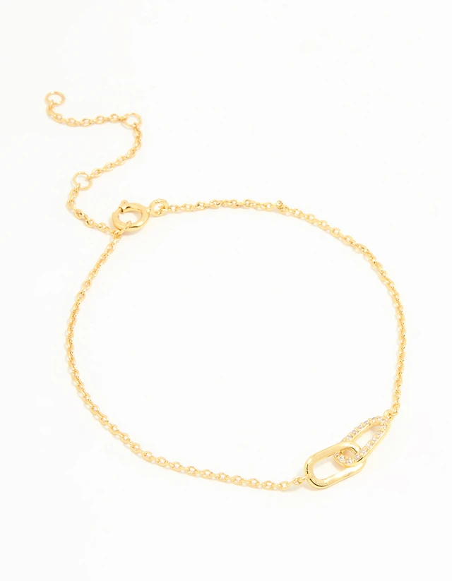 Gold Plated Brass Cubic Zirconia Pebble Chain Link Toggle Bracelet