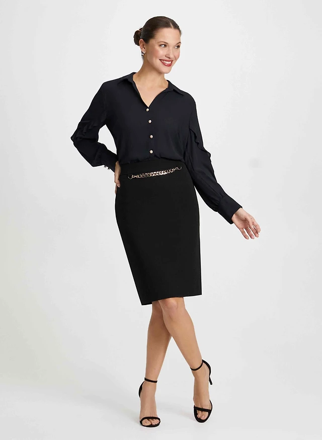 Open Front Jacket & Chain Link Trim Jeans