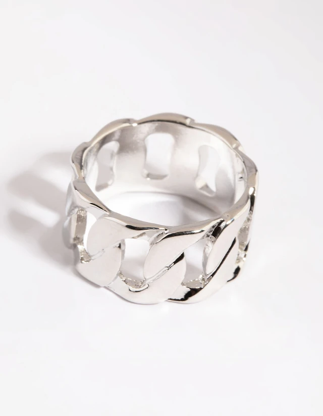 Men's Link Pattern Textured Signet Ring in Sterling Silver