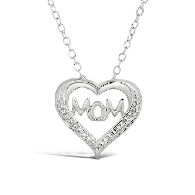 Sterling Silver 0.01CTW Diamond Mom Heart Pendant