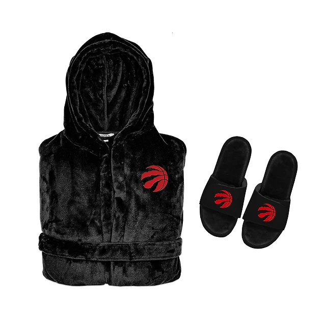 Unisex ISlide Black Toronto Raptors Phantom Hoodie Robe & Mantra Slide Sandals Bundle