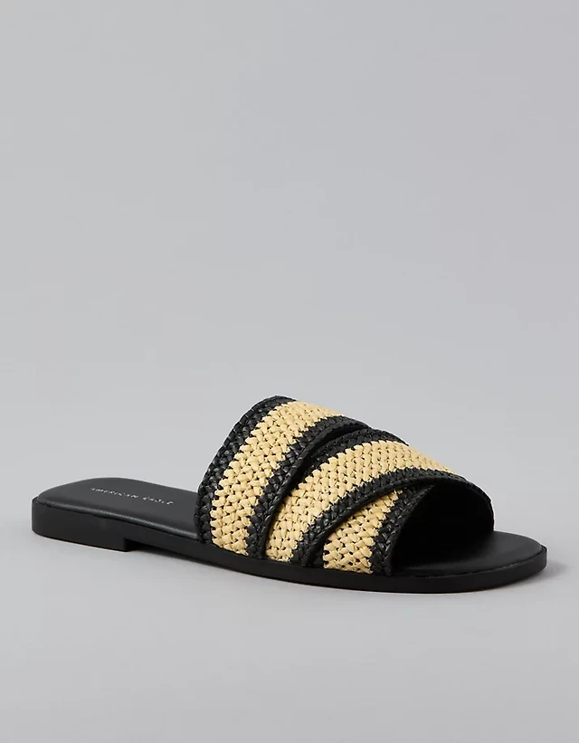 AE Two-Tone Raffia Slide Sandal