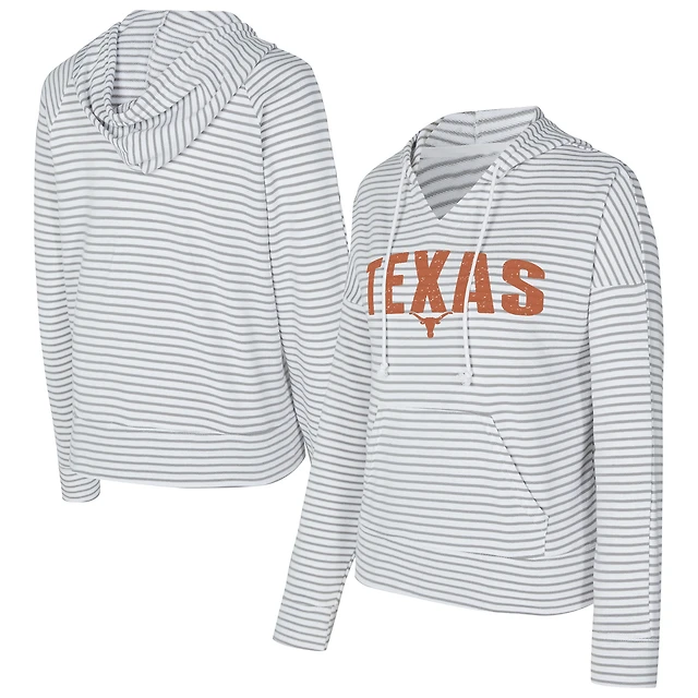 Women's Fanatics White/Gray Georgia Bulldogs Arch Logo Striped Notch Neck Pullover Hoodie