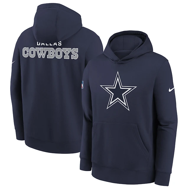 Youth Nike College Navy Dallas Cowboys 2025 Sideline Club Fleece Hoodie