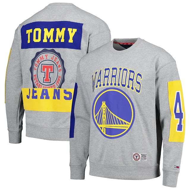 Men's Tommy Jeans Heather Gray Golden State Warriors Hayes Crew Neck Pullover Sweatshirt