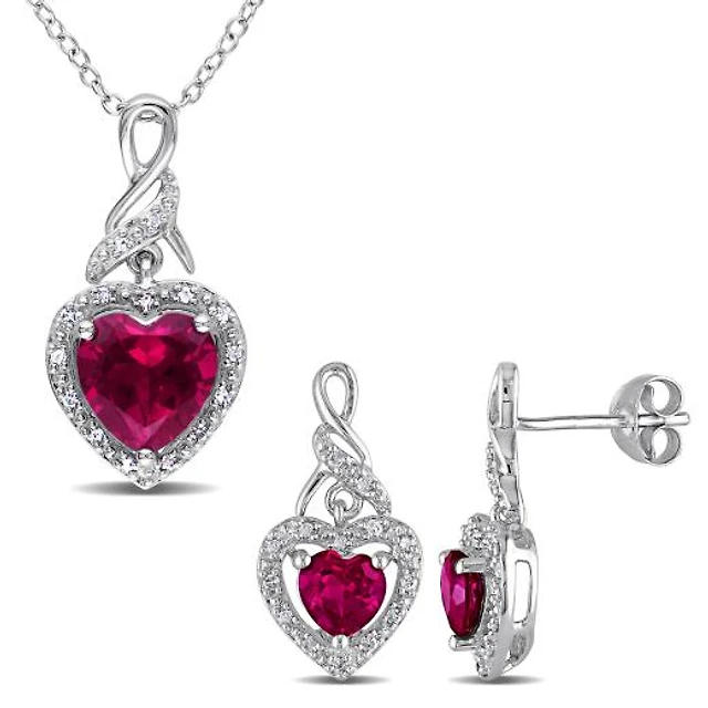 Julianna B Sterling Silver Created Ruby & Diamond Earring and 18" Pendant Set