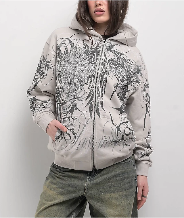 Insomnia Visuals Double Cross Rhinestone Black Zip Hoodie