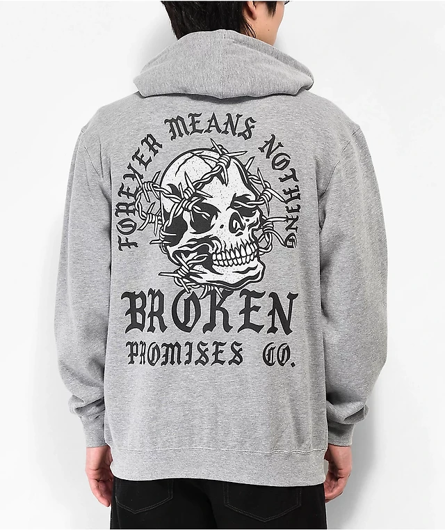 Broken Promises Shocked Horn Grey Zip Hoodie