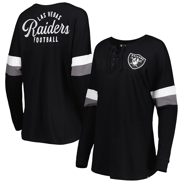 Women's New Era Black Las Vegas Raiders Athletic Varsity Lightweight Lace-Up Long Sleeve T-Shirt