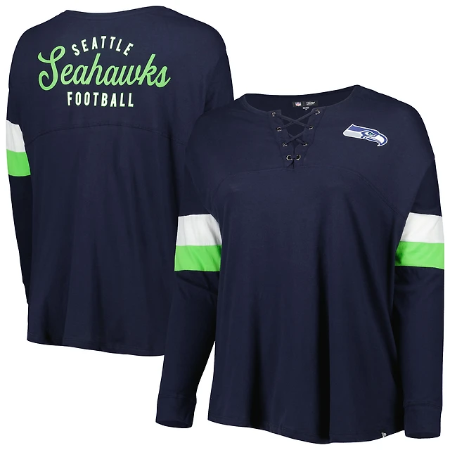 Women's Fanatics White/Navy Tennessee Titans Redzone Blitz Package Raglan Lace-Up V-Neck Long Sleeve T-Shirt