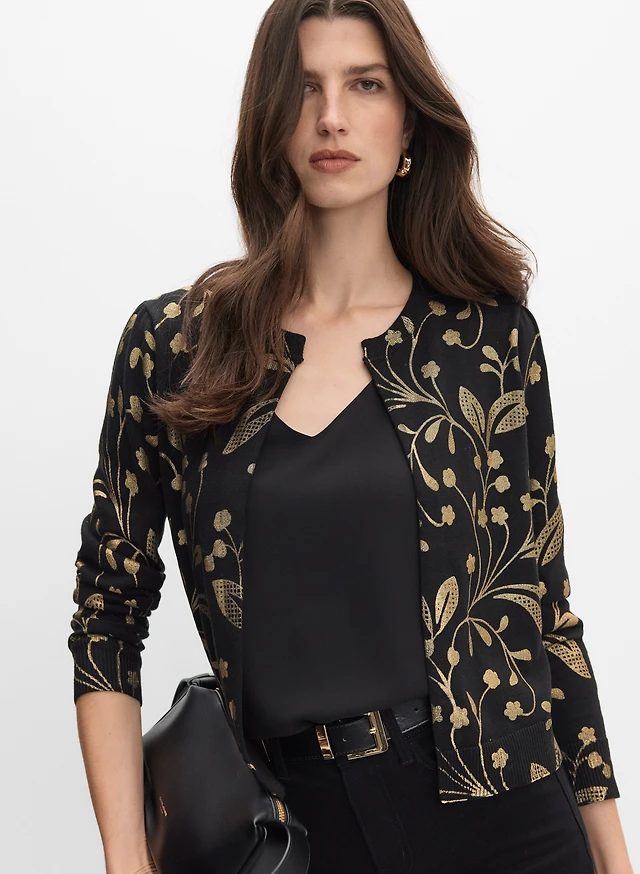 3/4 Sleeve Sequin Trim Cardigan