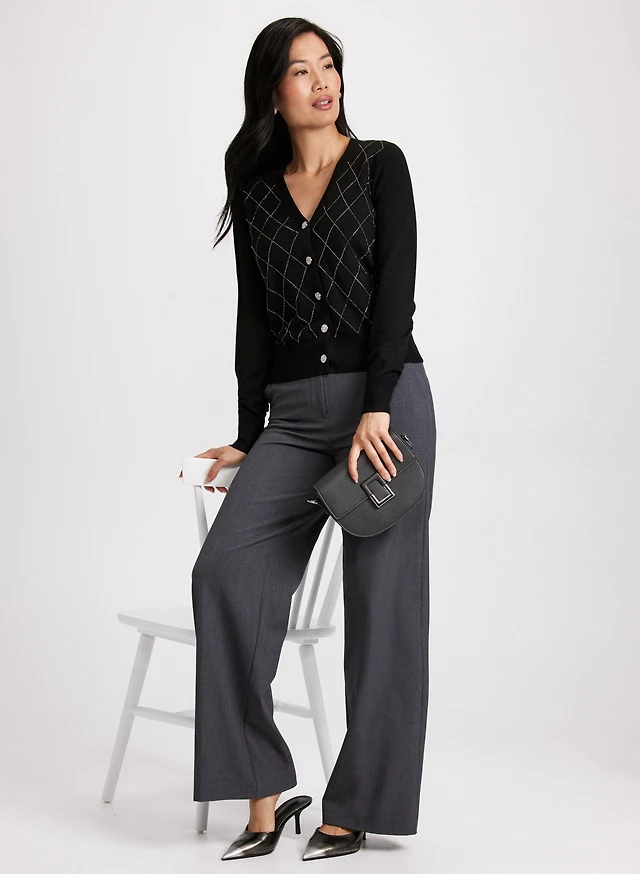 Crystal Bow Cardigan & Olivia Wide-Leg Pants