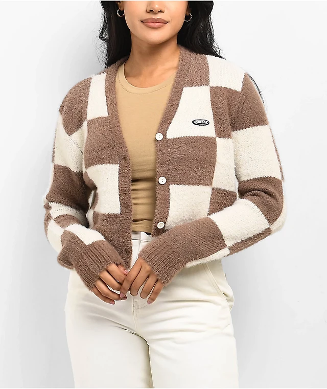Petals by & Peacocks Brown Checkered Crop Cardigan