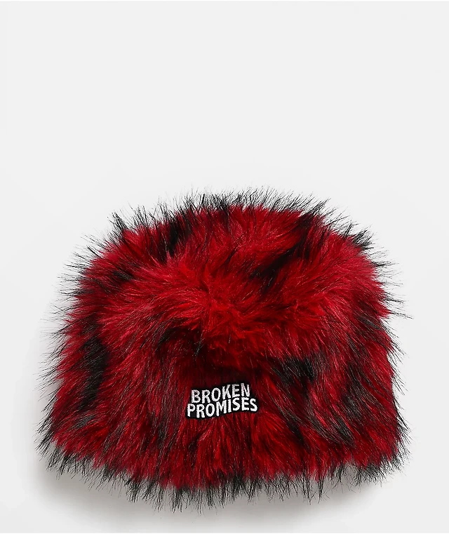 Broken Promises Redrum Red & Black Faux Fur Skully Beanie
