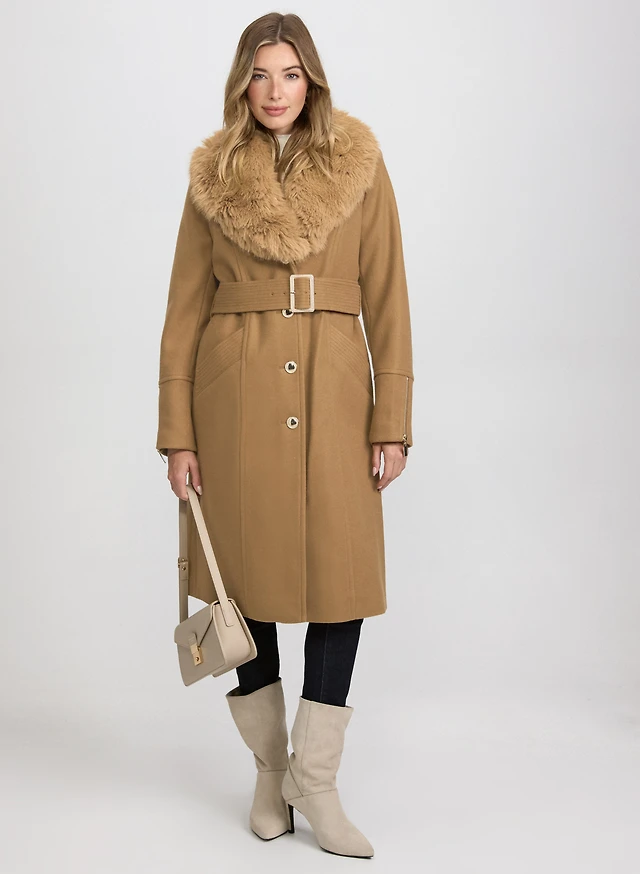 Knee-Length Herringbone Pattern Ultra-Soft Faux Fur Straight Cut Coat by Spanner