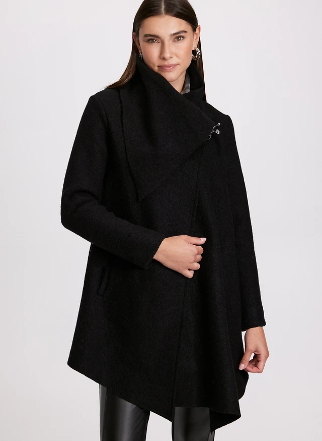 Button Front Stretch Wool Blend Coat