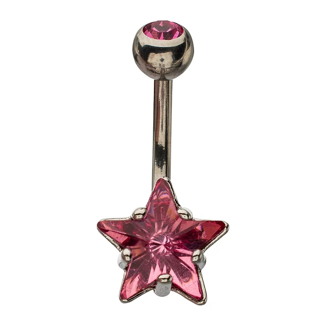 Silver-Tone CZ Starfish Dangle Belly Ring - 14 Gauge