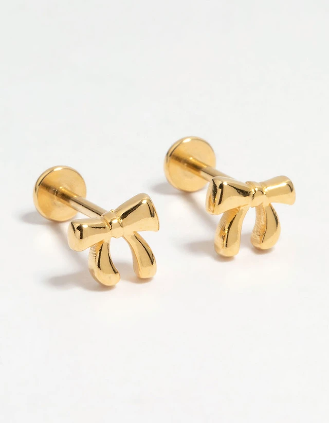 Gold Plated Surgical Steel Bow Flat Back Earrings