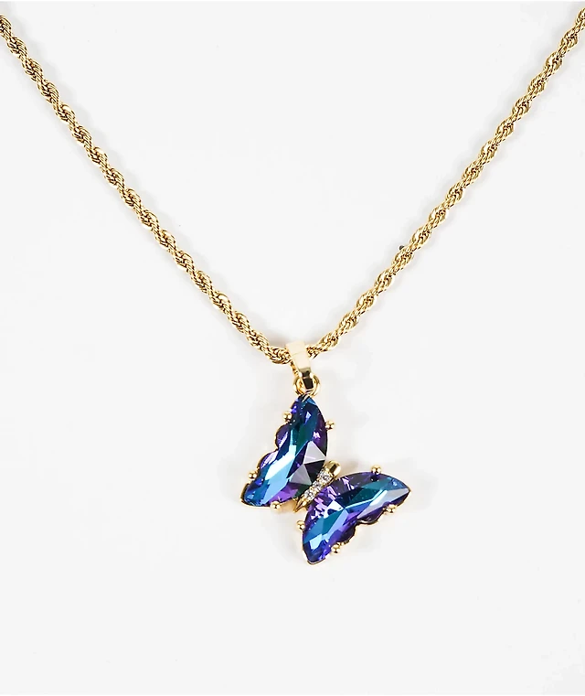 Saint Midas Blue Gem Butterfly 18" Gold Chain Necklace