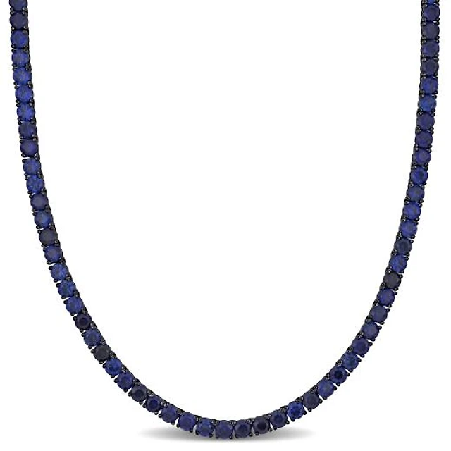 Alternating Onyx Bead Station Necklace in Sterling Silver - 36"