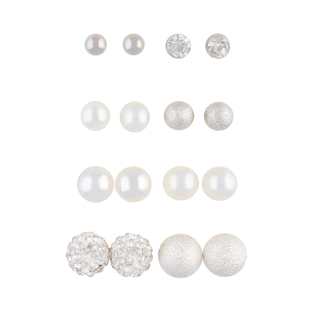 Silver Ball Pearlised Bead Mixed Stud 8-Pack
