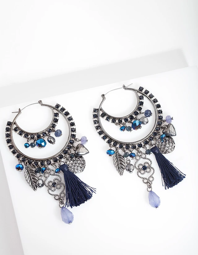 Gunmetal Cubic Zirconia Teardrop Earrings