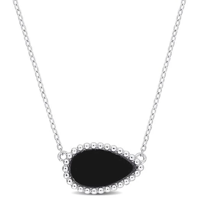 Julianna B Sterling Silver Heart Shape Black Agate Necklace