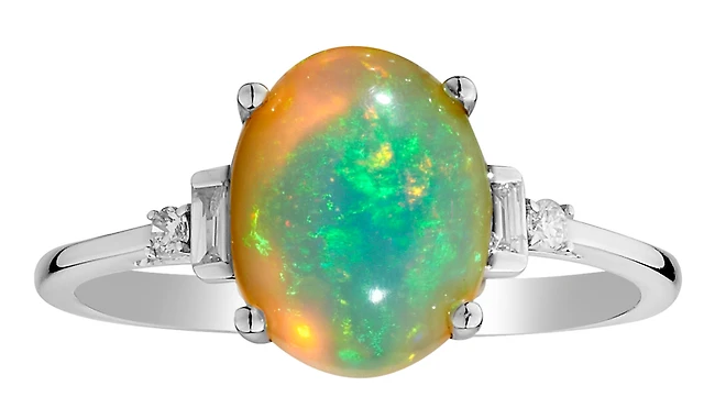 1.70 Carat of Genuine Ethiopian Opal & .15 Carat of Diamonds Ring, 10kt White Gold.....................NOW