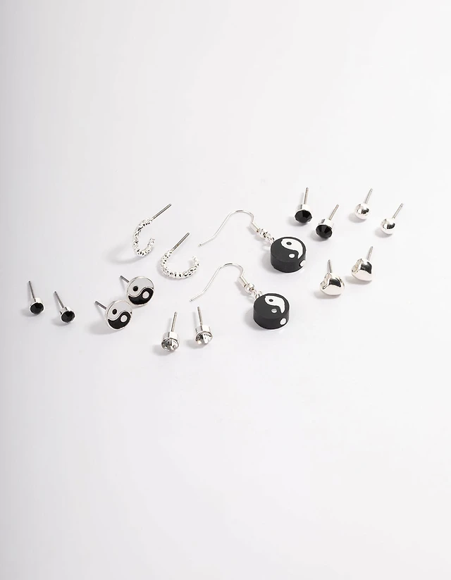 Silver Fimo Yin & Yang Earrings 8-Pack