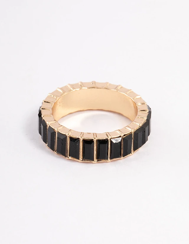 Silver Plated Black Cubic Zirconia Stacked Rondell Ring