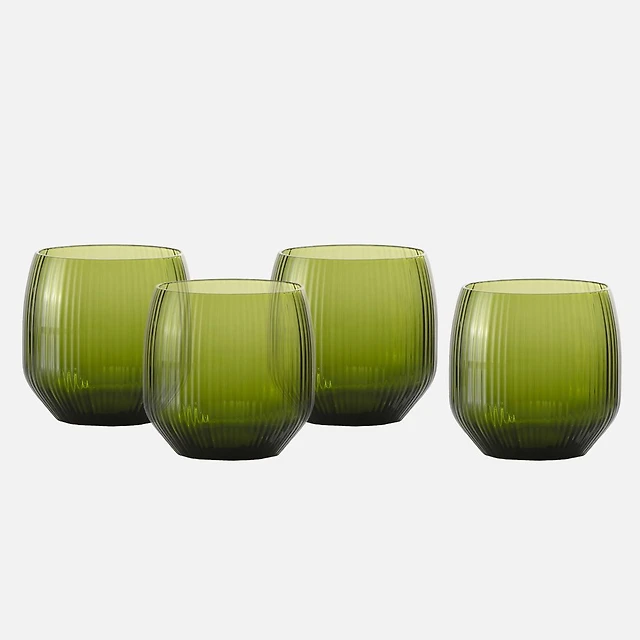 Veranda Green Double Old Fashioned Glasses, Set of 12 -14 oz