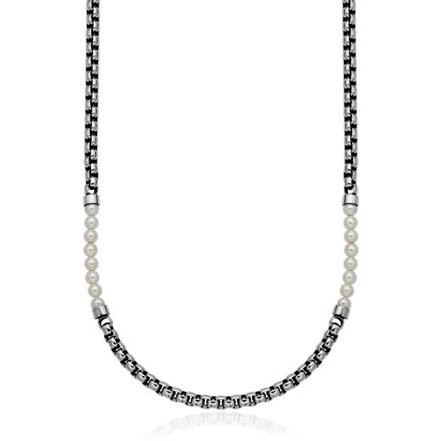Men's Carbon fibre Stacked Cross Pendant in Stainless Steel - 24"