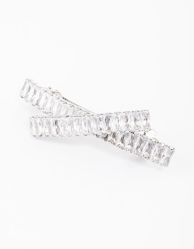 Silver Cubic Zirconia Triple Flower Droplet Hair Clips Pack