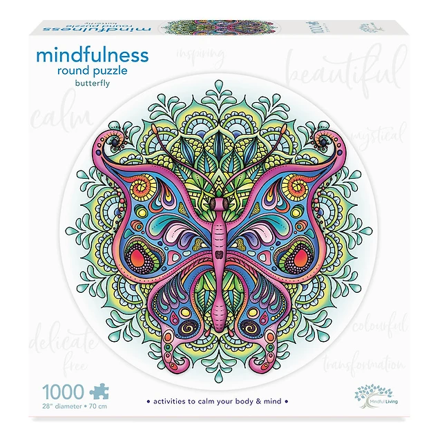 Mindful Living 1000 pc. Mandala Puzzle - Butterfly - English Edition