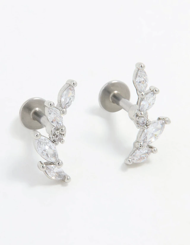 Surgical Steel Cubic Zirconia Leaf Flat Back Pack