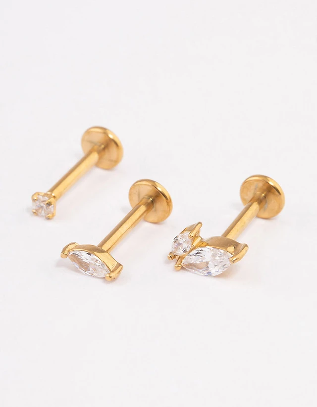 Mixed Metal Surgical Steel Fine Stone Flat Back Earring Pack