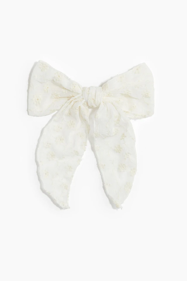 Eyelet-Embroidered Bow Hair Clip