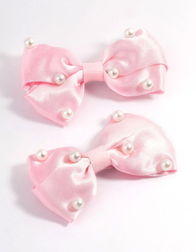 Pearl Detail Mesh Bow Clip