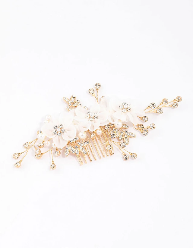 Gold Mixed Flower & Leaf Hair Comb