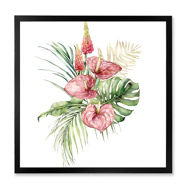 Tropical Bouquet with Anthurium Lupine & Leaves I Canvas Wall Art Print Panels