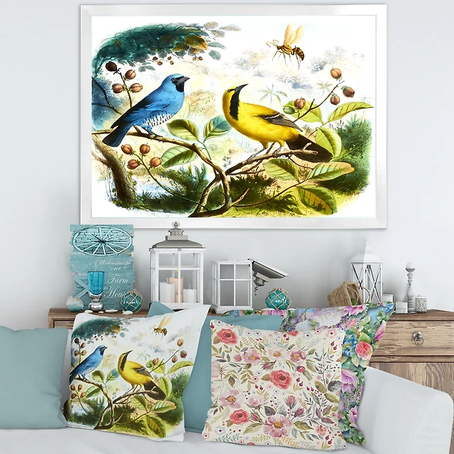 Blue and Yellow Bird The Wild Canvas Wall Art Print